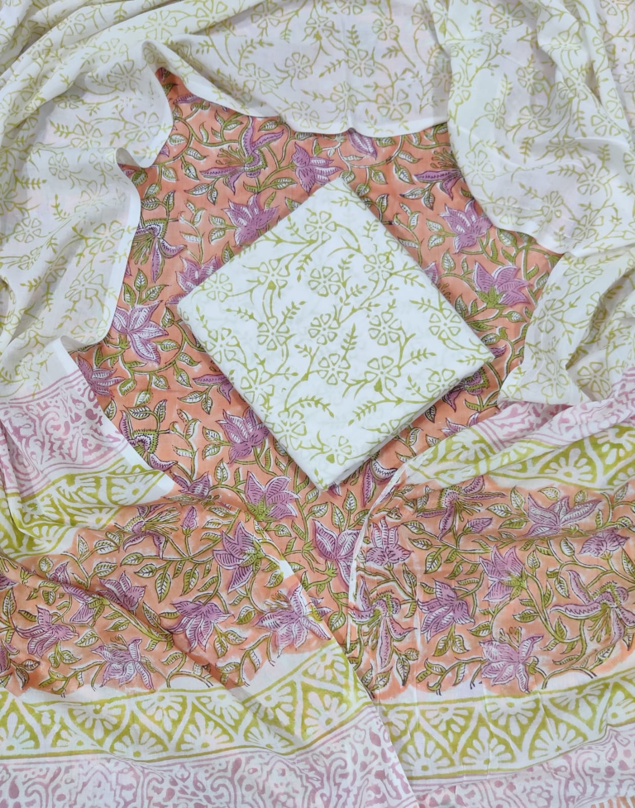 These beautiful suit sets are handcrafted using blocks along with natural colours. Fine Quality unstitched suit set handcrafted with love in Jaipur, India.